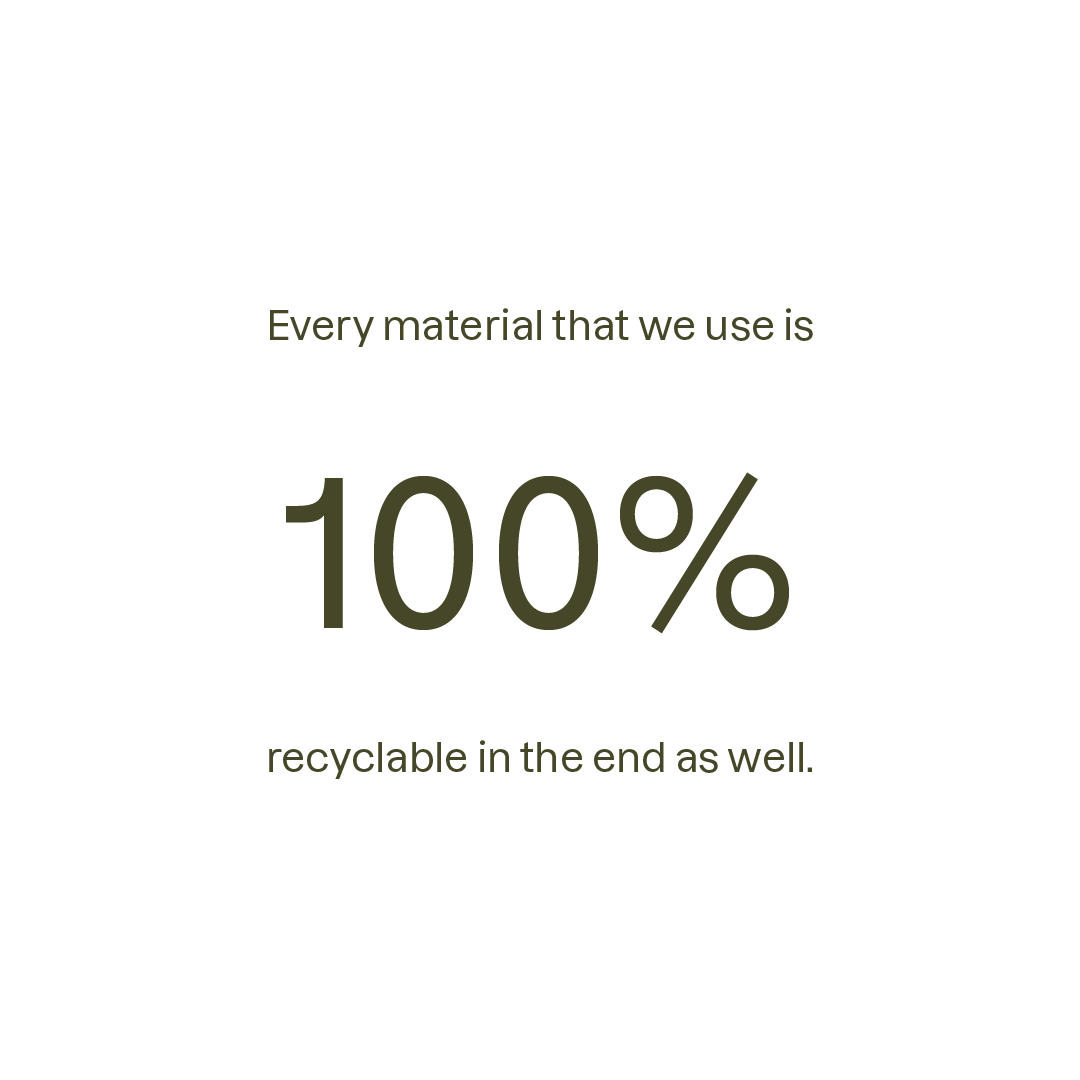 Our commitment to sustainability goes beyond material choice. All of our materials meet strict environmental standards. We are certified with EMS ISO 14001, ISCC+, GRS+, FSC, and PEFC, ensuring the highest standards for environmental management, social responsibility, and sustainable sourcing. We continuously strive to improve our practices each year by exploring and incorporating more sustainable and circular materials. This demonstrates our commitment to responsible and ethical business practices in all aspects of our operations.